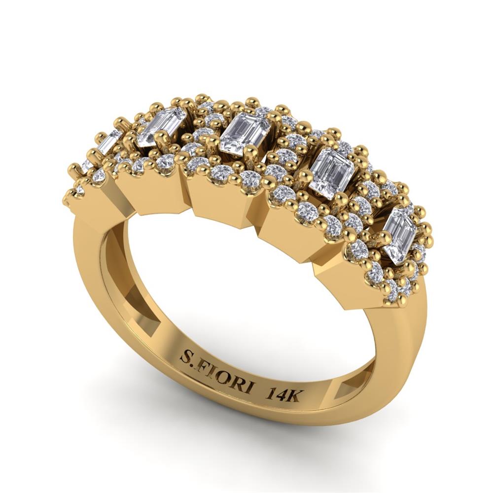 14K Gold White Diamond Ring Featuring 0.36 cts Baguette Shaped White Diamond, 0.29 cts Round Shaped White Diamond