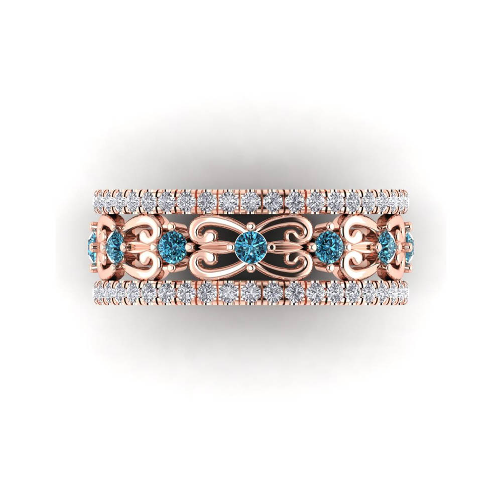 14K Gold Blue Diamond Enhanced Color Ring Featuring 0.28 cts Round Shaped Blue Diamond Enhanced Color Surrounded by 0.44 cts Round Cut White Diamond