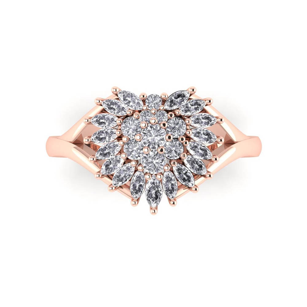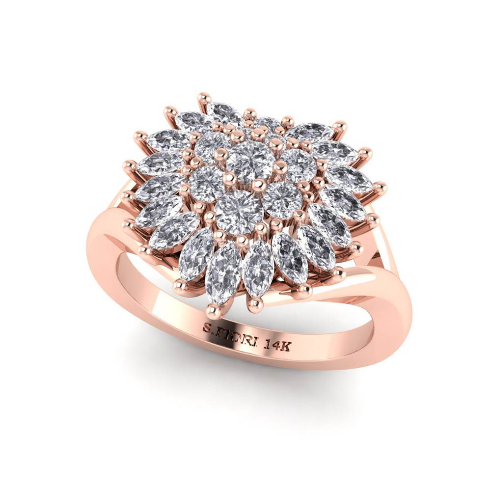 14K Gold White Diamond Ring Featuring 0.428 cts Marquise Shaped White Diamond, 0.294 cts Round Shaped White Diamond