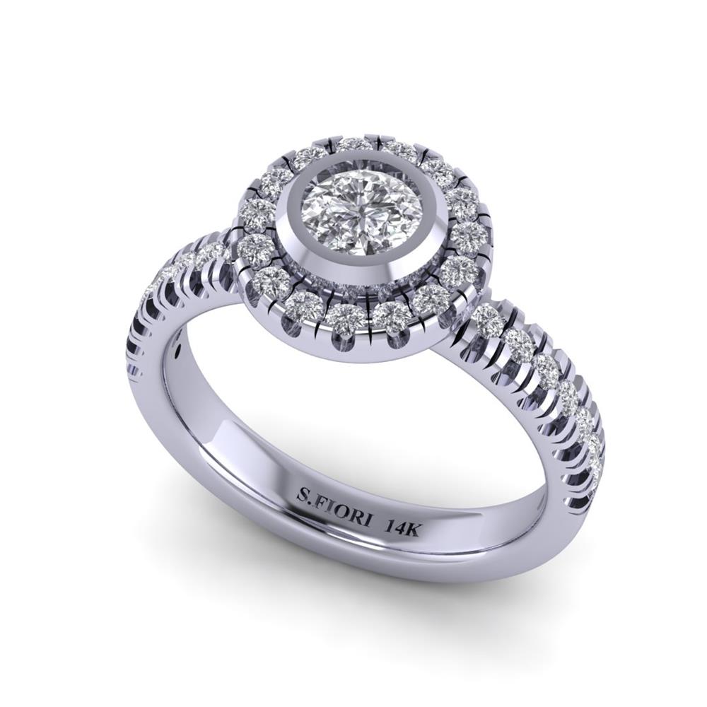 14K Gold Stunning White Diamond Ring Featuring 0.40 Round Shaped Stunning White Diamond surrounded by 0.37 Round White Diamond