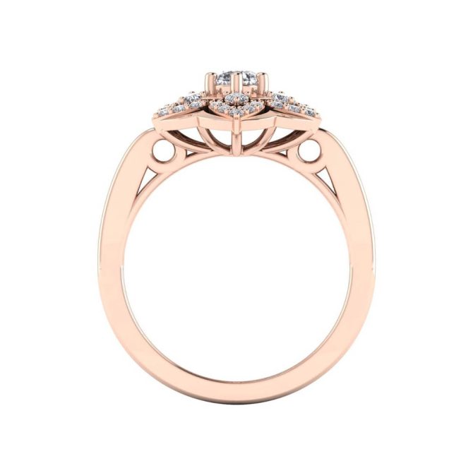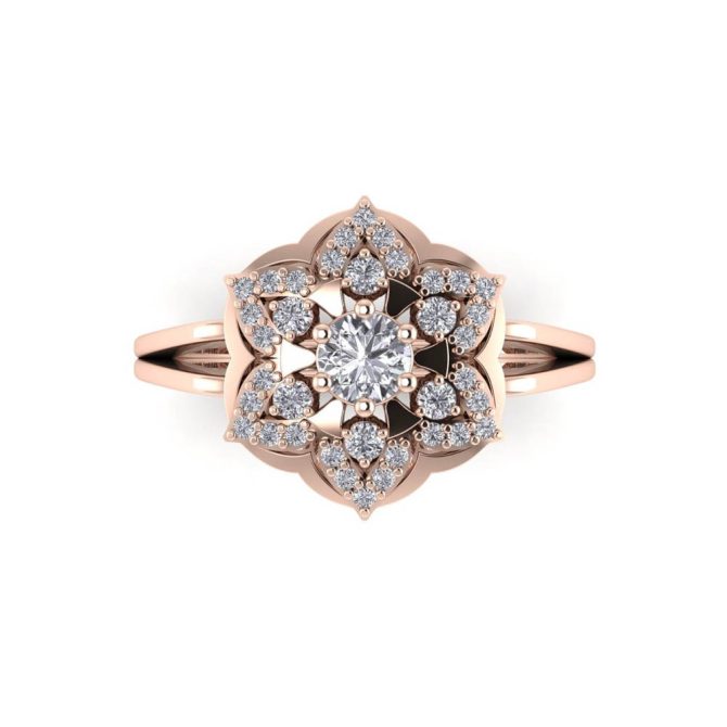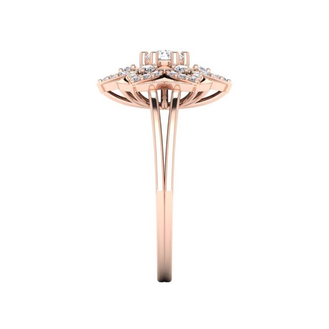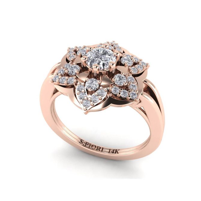 14K Gold Stunning White Diamond Flower Collection Ring Featuring 0.68 Cts Round Shaped White Diamond Surrounded by 0.33 cts Round Shaped White Diamond