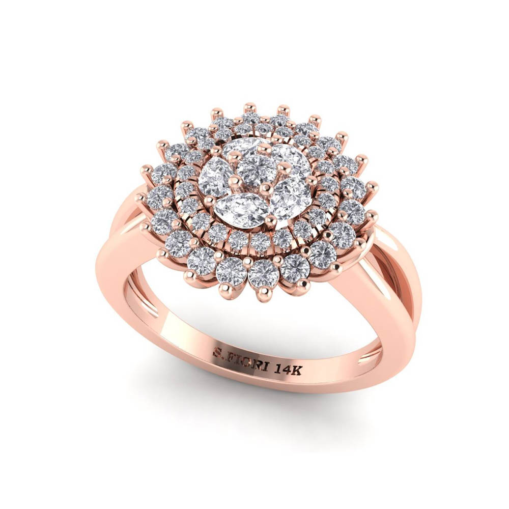 14K Gold White Diamond Ring Featuring 0.65 cts Pear Shaped White Diamond, 0.44 cts Round Shaped White Diamond