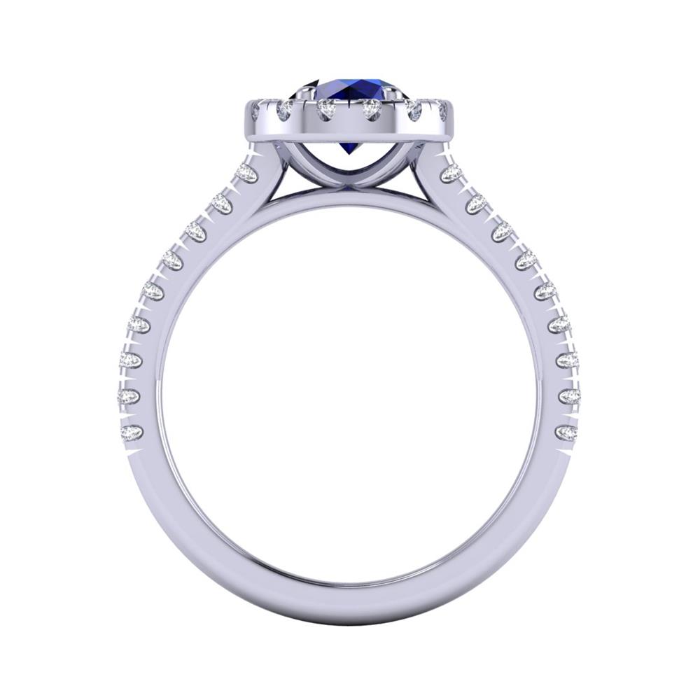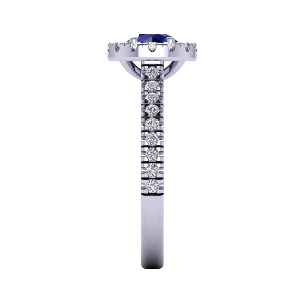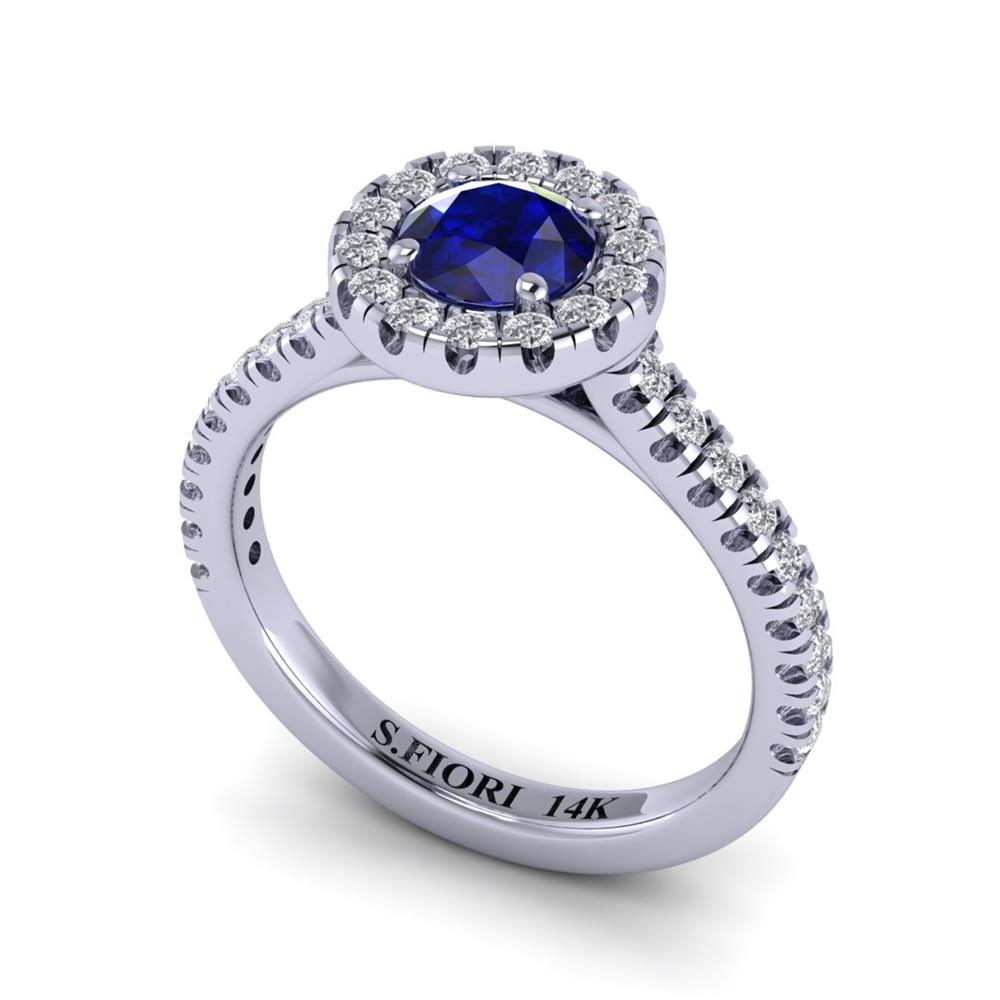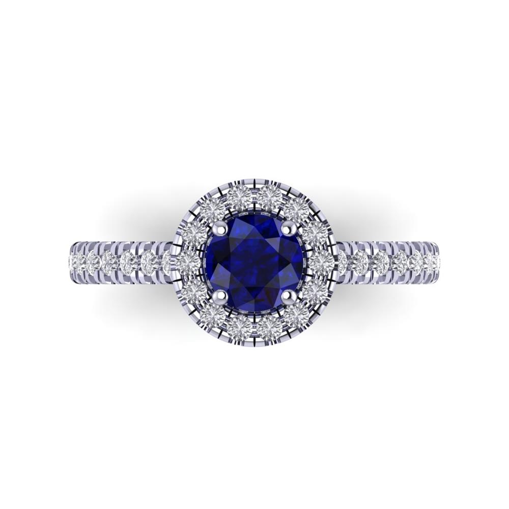 14K Gold Translucent Blue Sapphire Ring Featuring 0.75 Round Shaped Translucent Blue Sapphire surrounded by 0.40 Round White Diamond