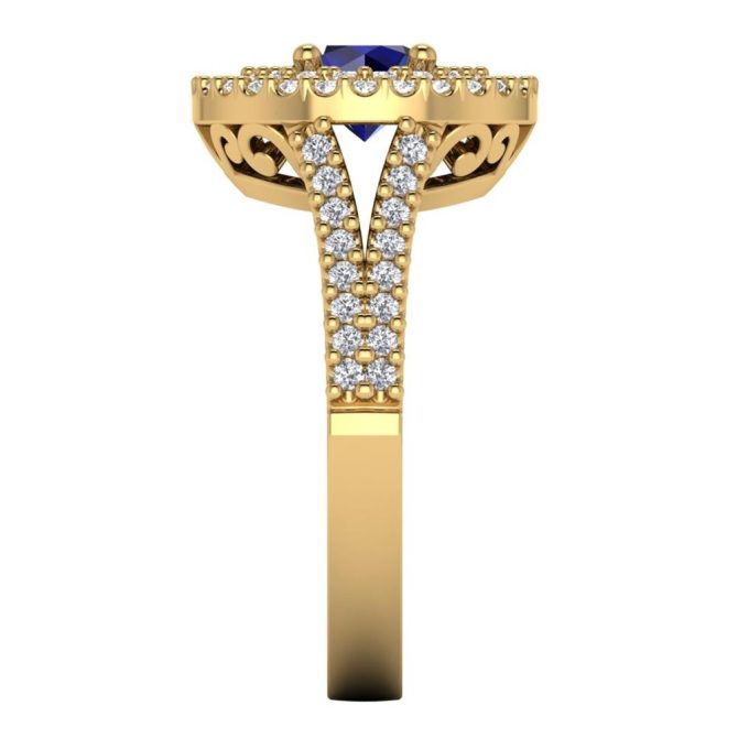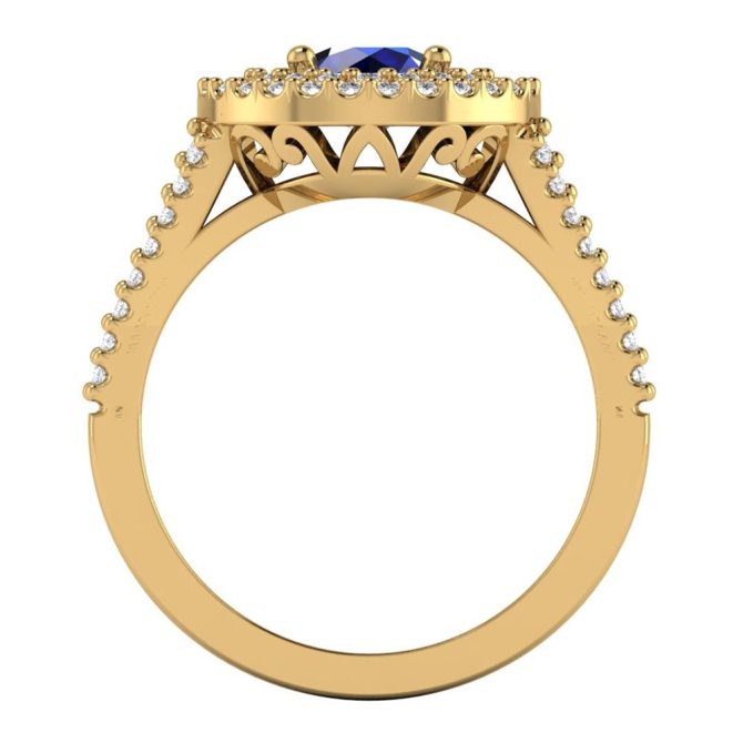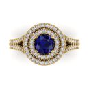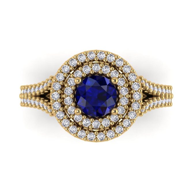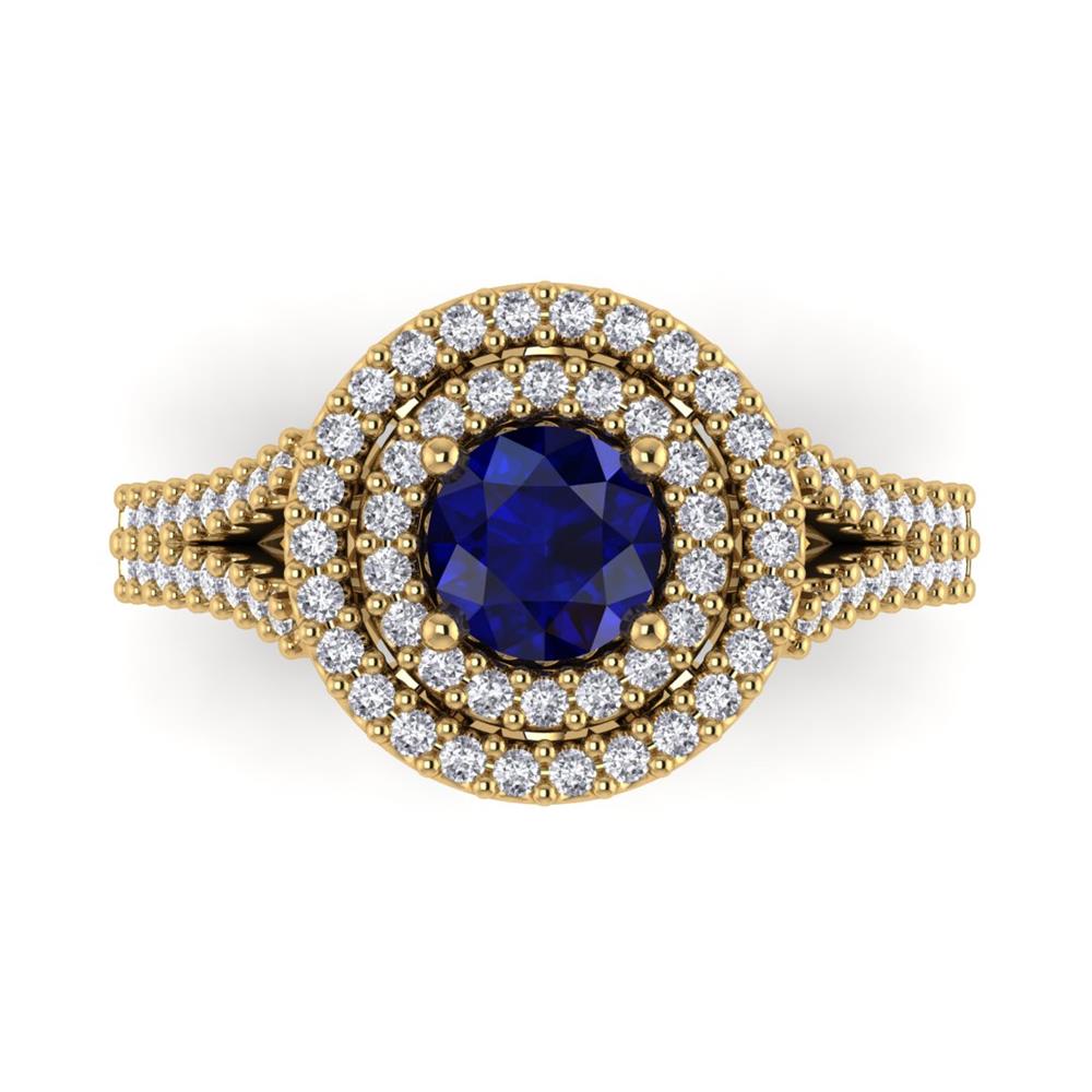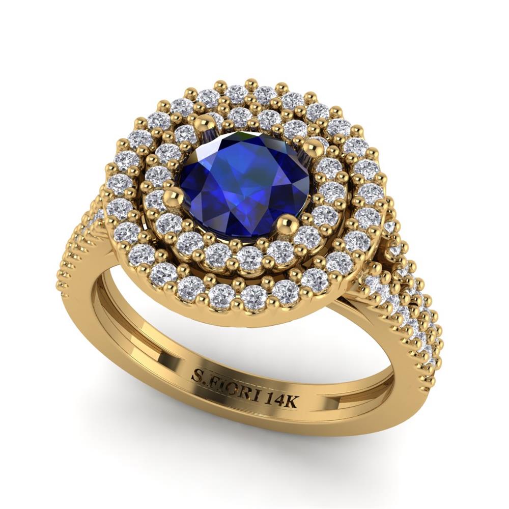 14K Gold Translucent Blue Sapphire Ring Featuring 0.75 Round Shaped Translucent Blue Sapphire surrounded by 0.49 Round White Diamond