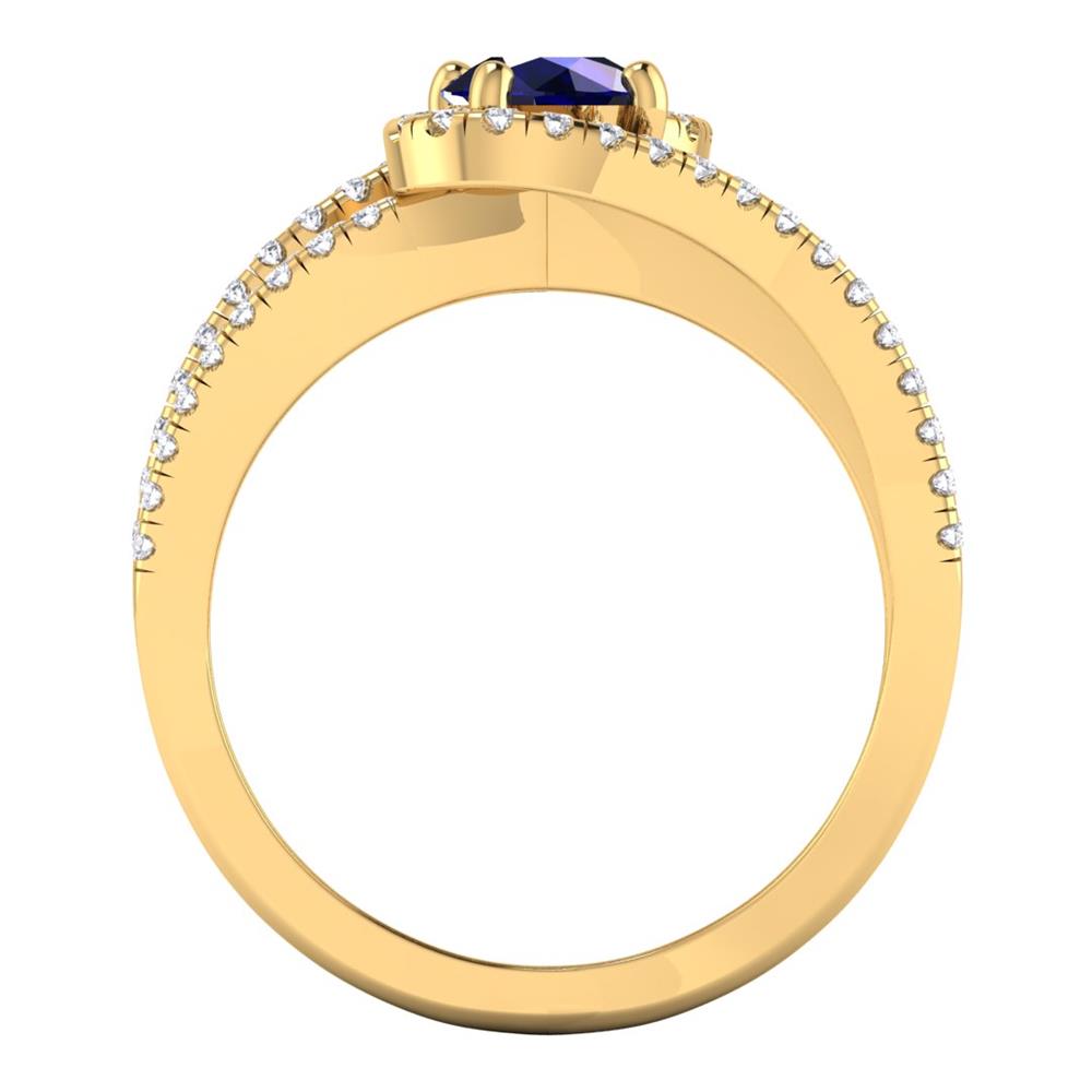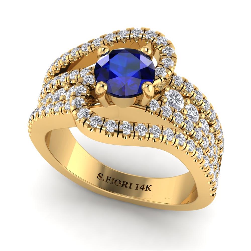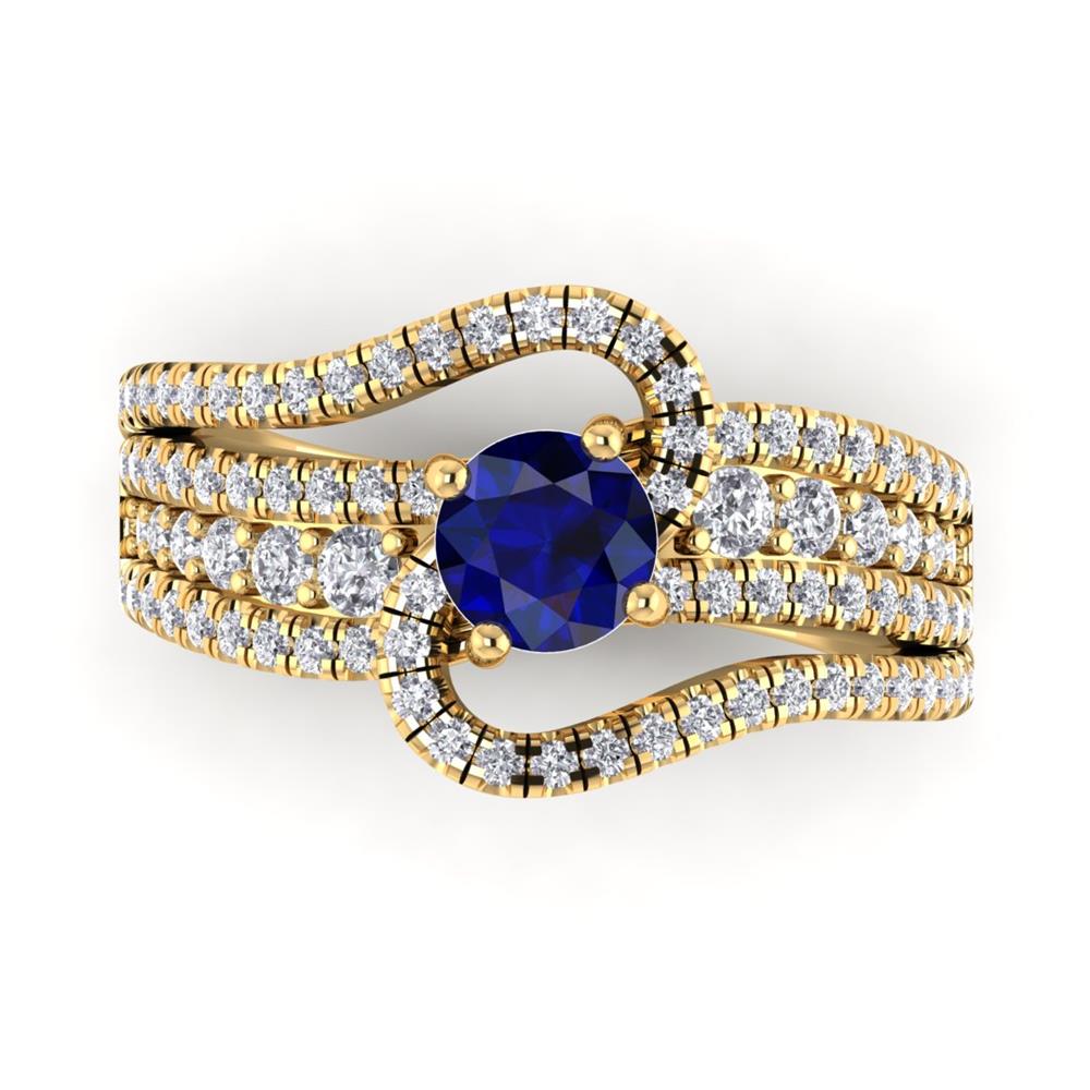 14K Gold Translucent Blue Sapphire Ring Featuring 0.60 Round Shaped Translucent Blue Sapphire surrounded by 0.76 cts Round Shaped White Diamond