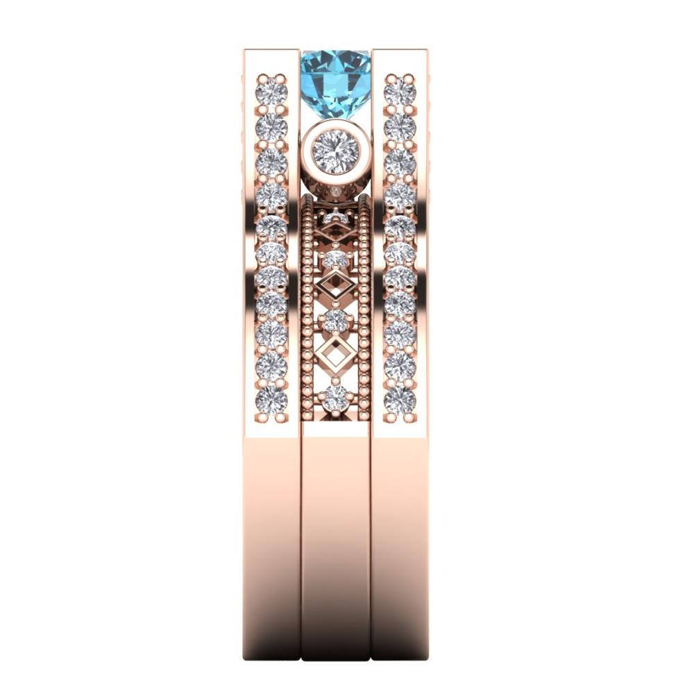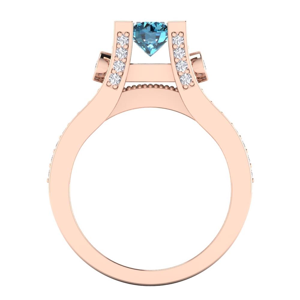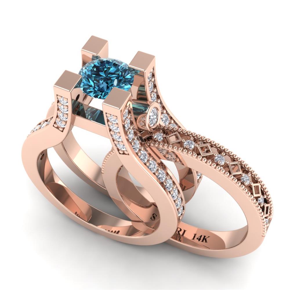 14K Gold Blue Diamond Enhanced Color Ring Featuring 0.84 Round Shaped Blue Diamond Enhanced Color surrounded by 0.07 Round White Diamond