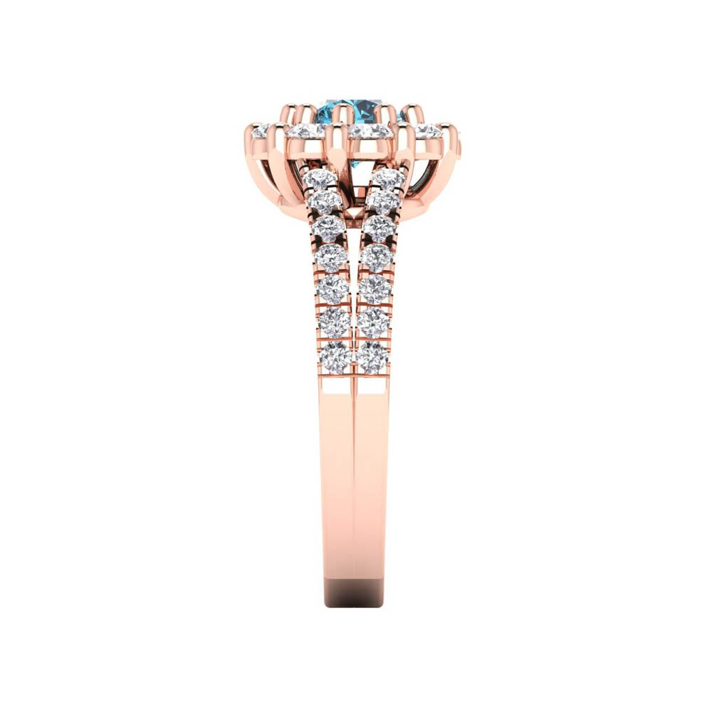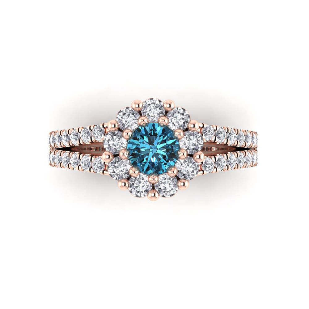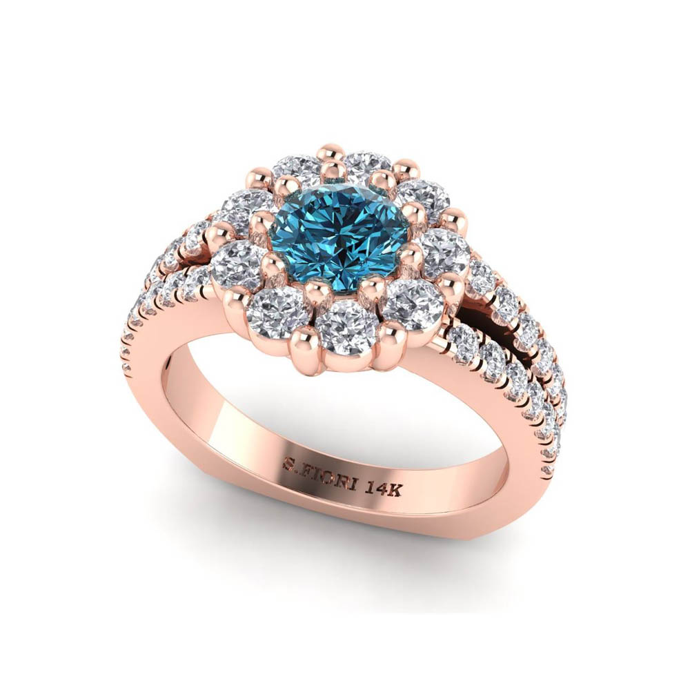 14K Gold Blue Diamond Enhanced Color Ring Featuring 0.73 Cts Round Shaped Blue Diamond surrounded by 0.84 cts Round Shaped White Diamond