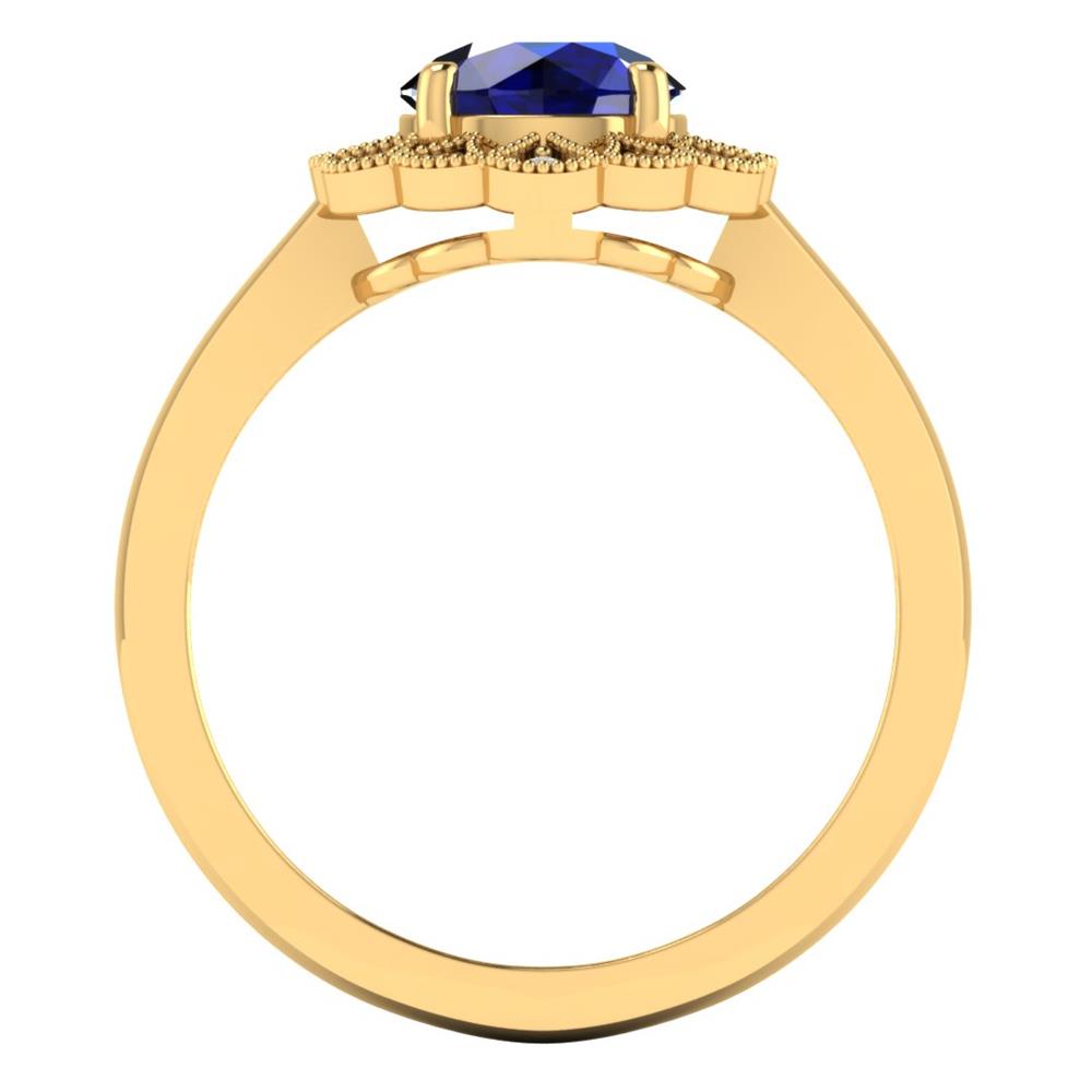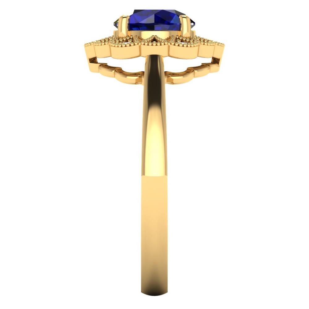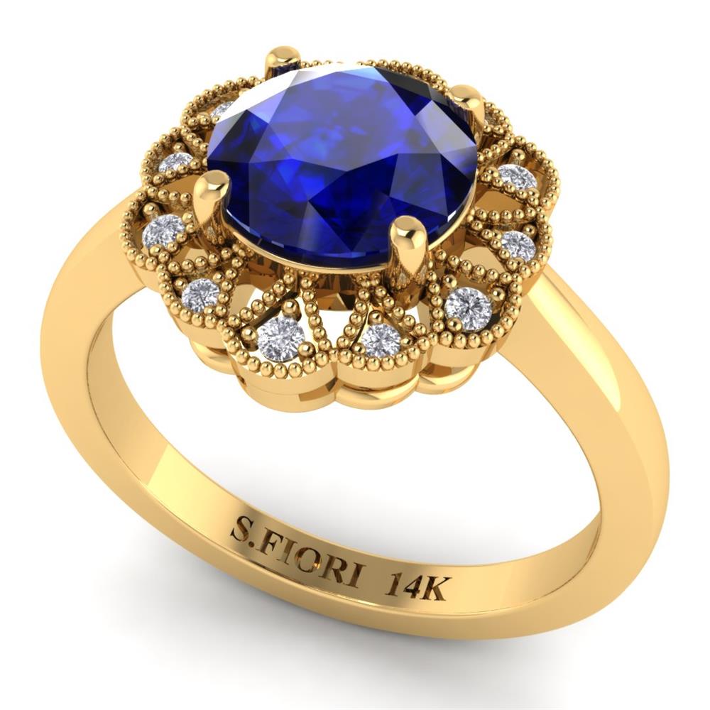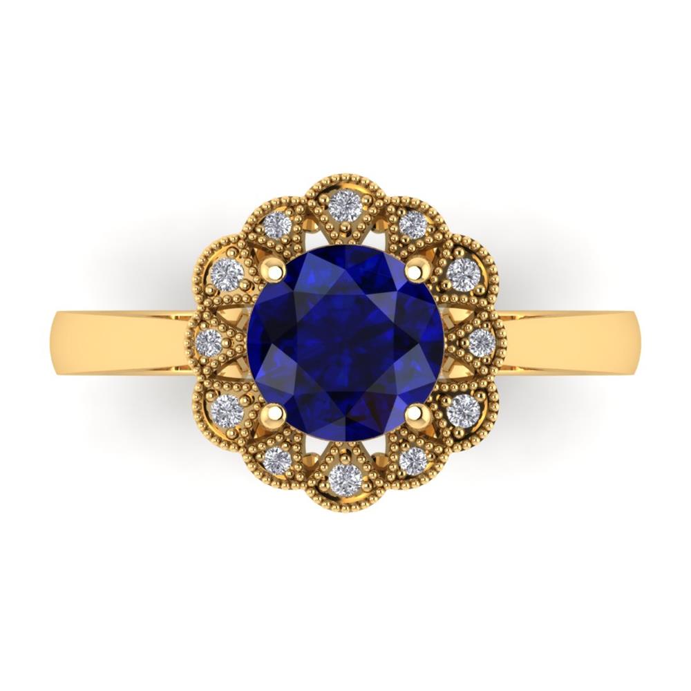 14K Gold Translucent Blue Sapphire Ring Featuring 1.50 Cts Round Shaped Blue Sapphire Surrounded by 0.07 cts Round Shaped White Diamond