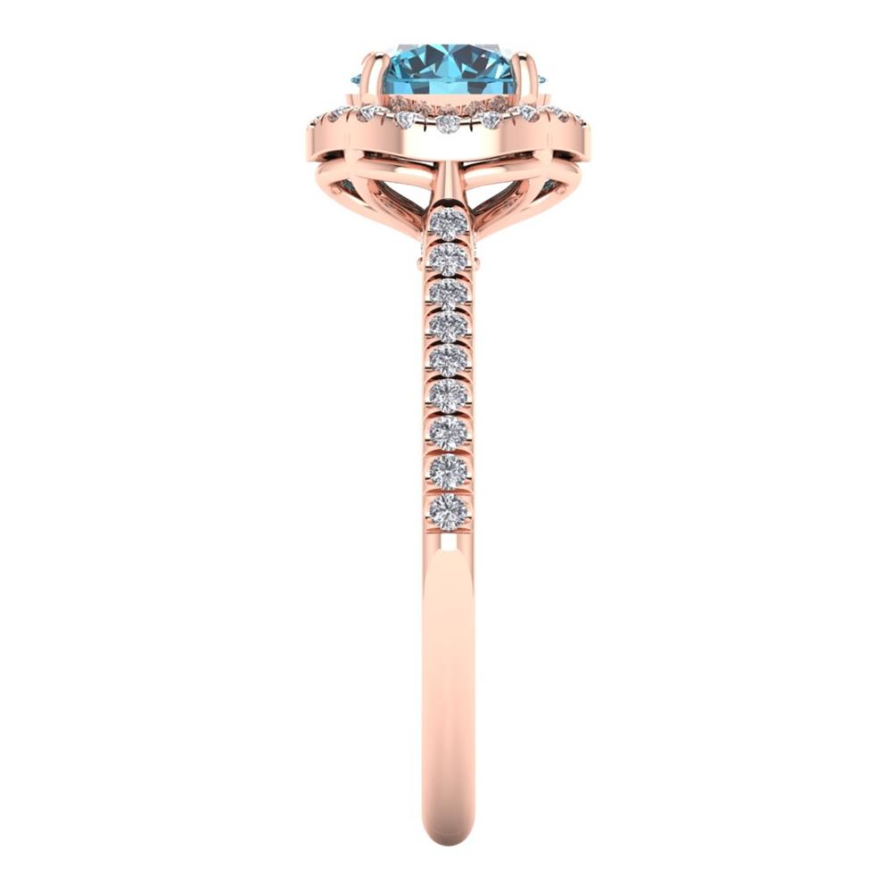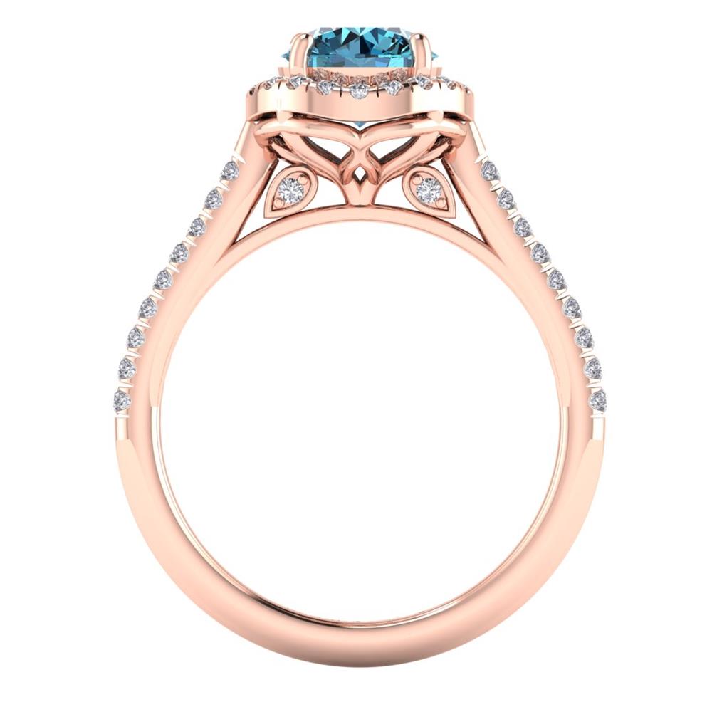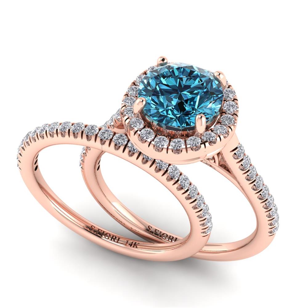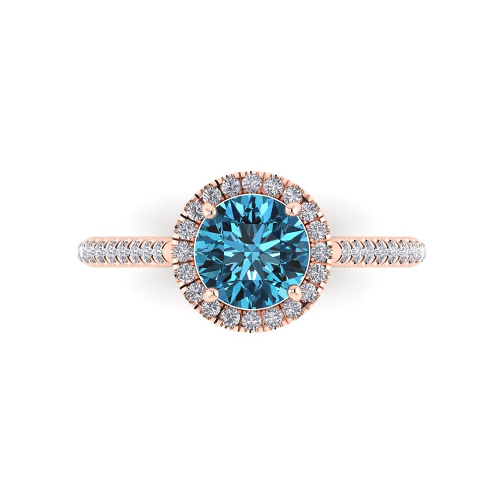 14K Gold Blue Diamond Enhanced Color Ring Featuring 1.30 Round Shaped Blue Diamond Enhanced Color surrounded by 0.29 cts Round Shaped White Diamond