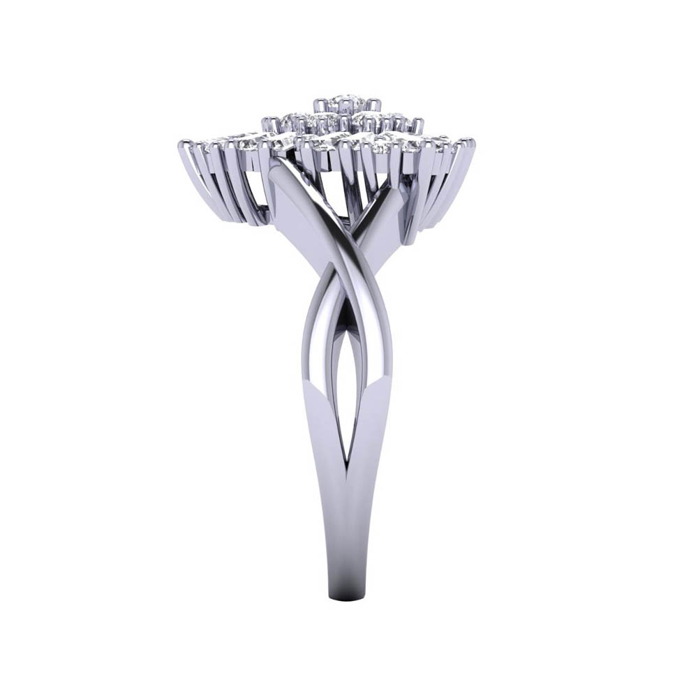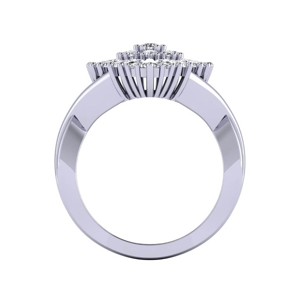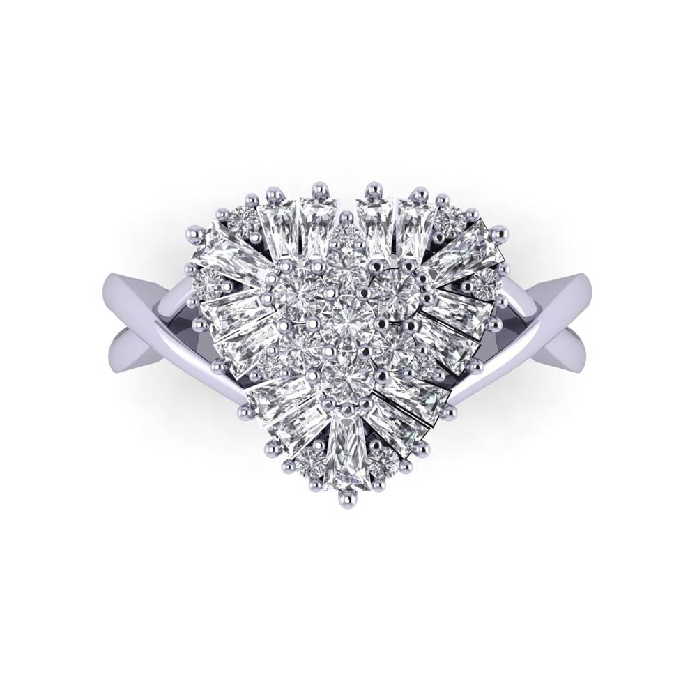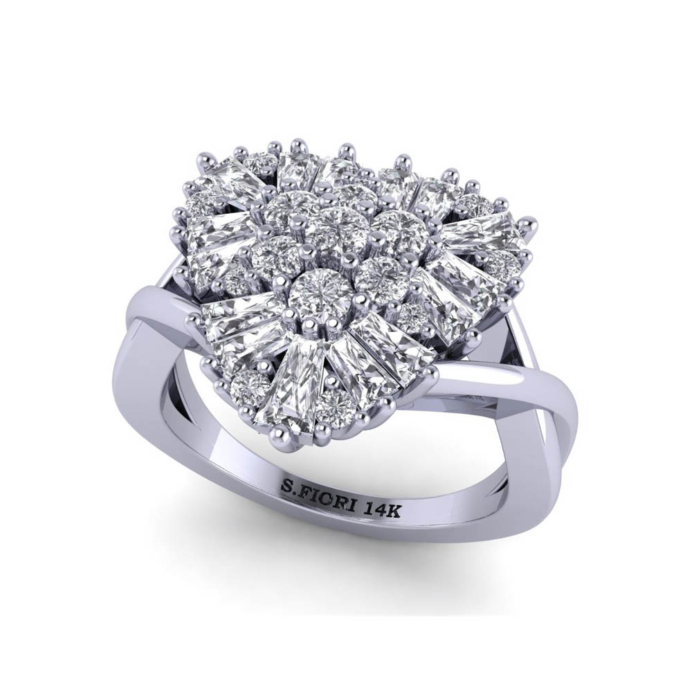 14K Gold White Diamond Ring Featuring 1.2 cts Baguette Shaped White Diamond, 0.435 cts Round Shaped White Diamond