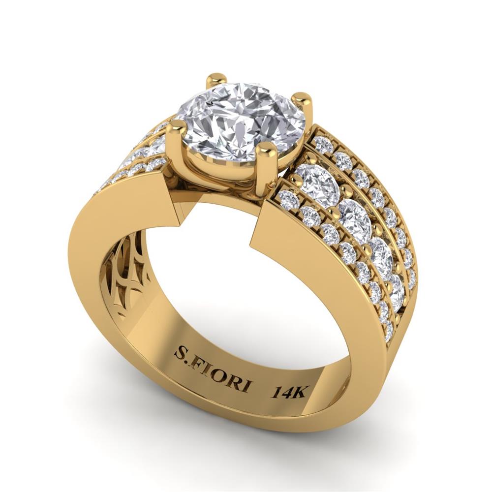 14K Gold Stunning White Diamond Ring Featuring 1.50 Cts Round Shaped White Diamond Surrounded by 1.00 cts Round Shaped White Diamond