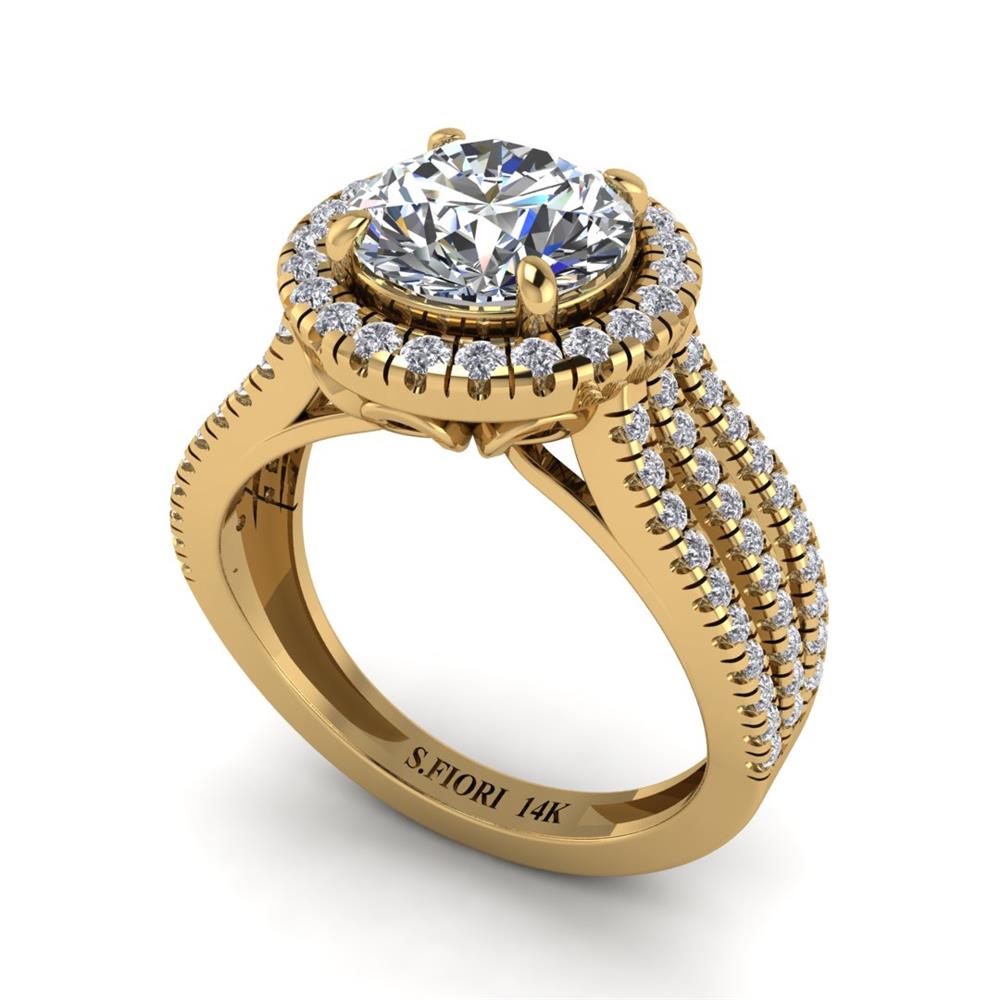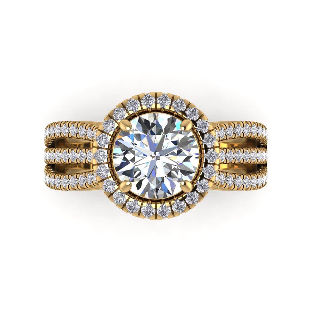 14K Gold Stunning White Diamond Ring Featuring 2.00 Round Shaped Stunning White Diamond surrounded by 0.62 cts Round Shaped White Diamond