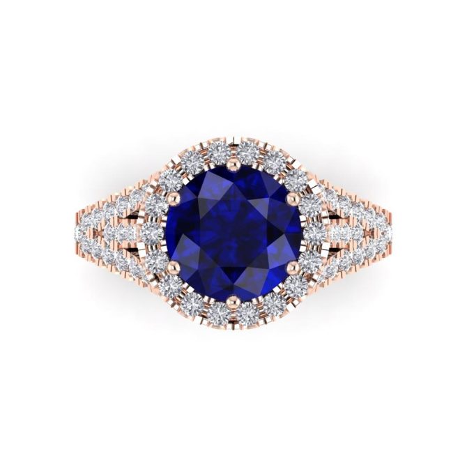 14K Gold Translucent Blue Sapphire Ring Featuring 2.63 Round Shaped Translucent Blue Sapphire surrounded by 0.73 cts Round Shaped White Diamond