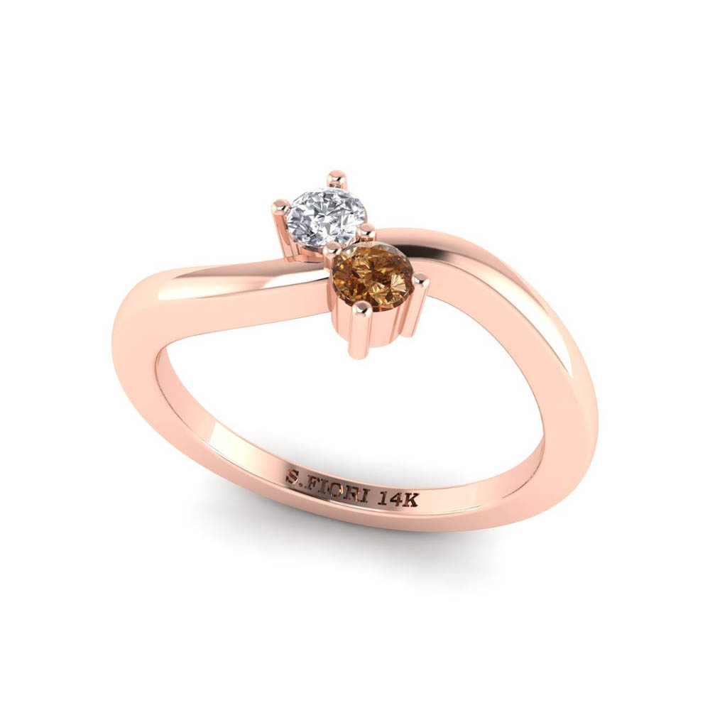 14K Gold Blue Sapphire Ring Featuring 0.09 Cts Round Brilliant Cut Blue Sapphire Accompanied by 0.09 Cts Round Brilliant Cut White Diamond