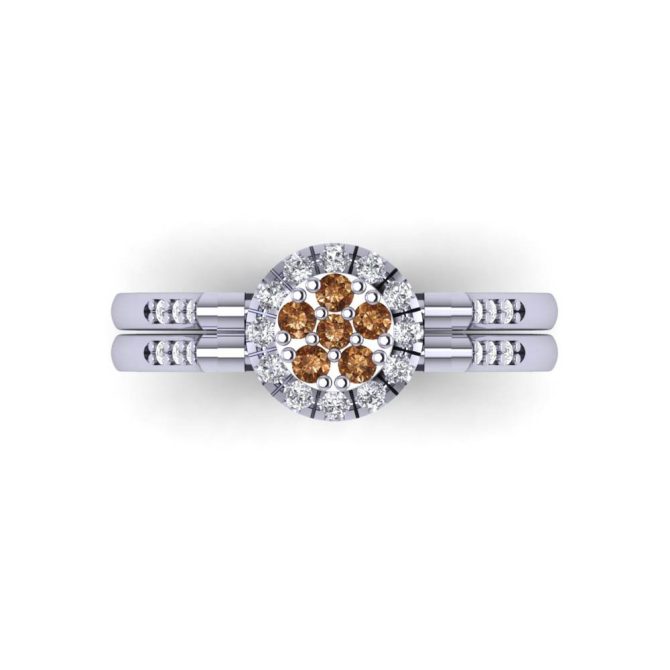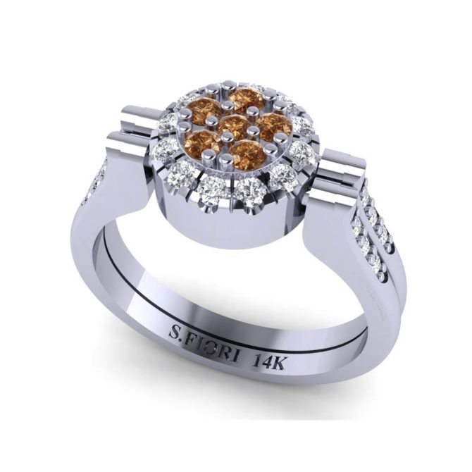 14K Gold Blue Diamond Enhanced Color Rings Featuring 0.15 cts Round Shaped Blue Diamond, 0.38 cts Round Shaped White Diamond