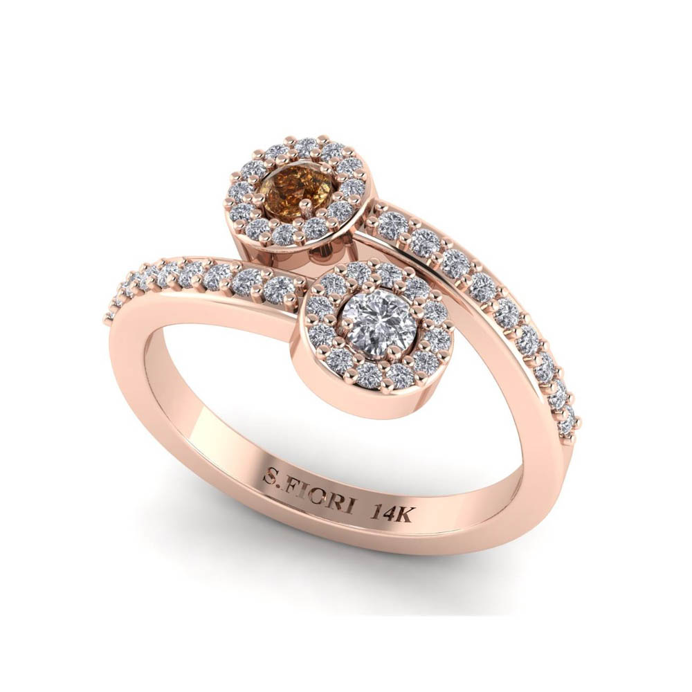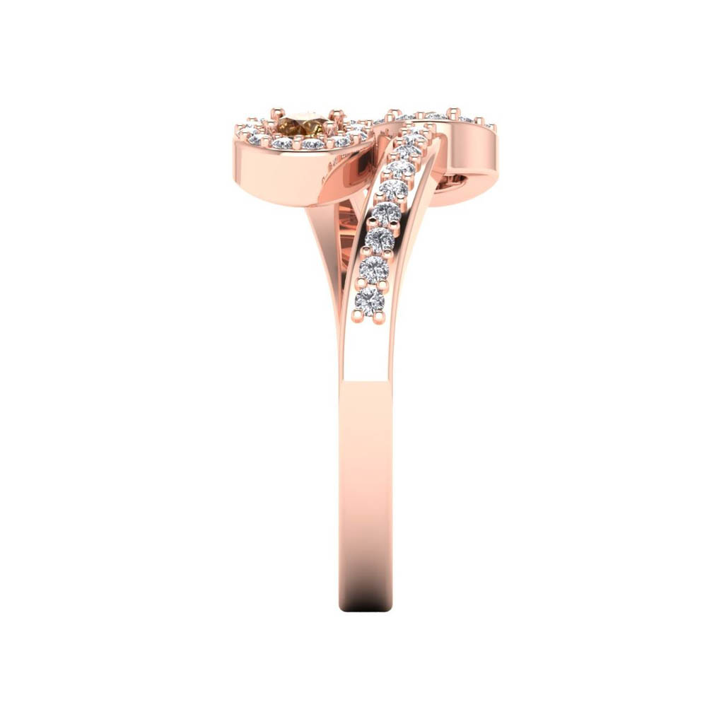 14K Gold Fashionable Cognac Diamond Rings Featuring 0.20 Cts Round Brilliant Cut Cognac Diamond Surrounded by 0.52 cts Round Shaped White Diamond