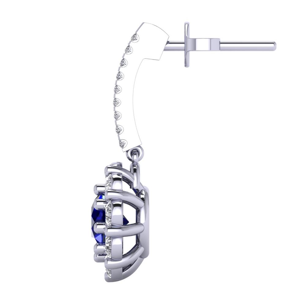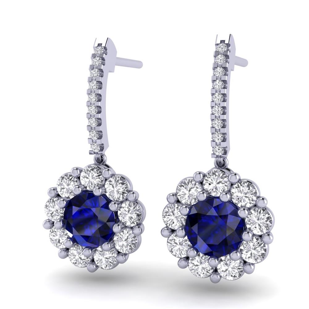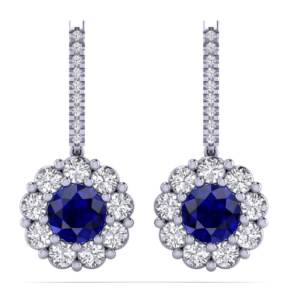 14K Gold SF Signature Cleopatra Collection Blue Diamond Enhanced Color Earrings Featuring 1.68 cts Round Brilliant Cut Blue Diamond Enhanced Color surrounded by 1.37 cts Round Shaped White Diamond