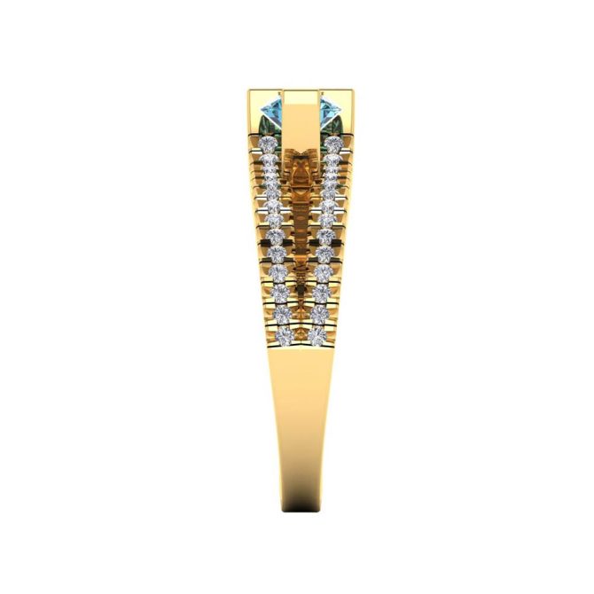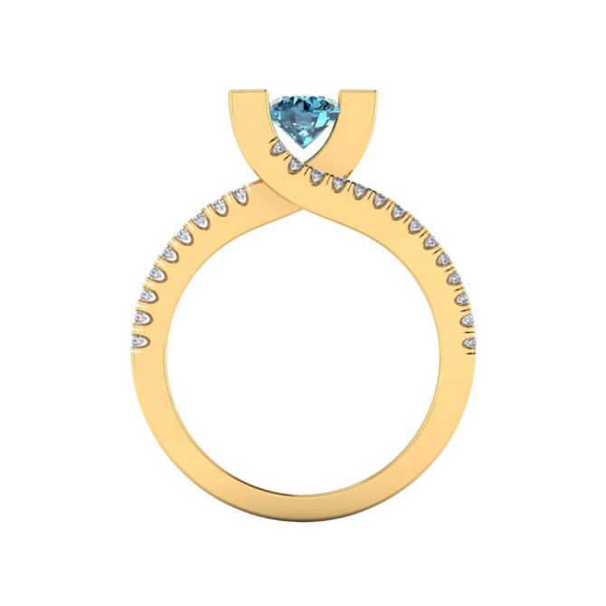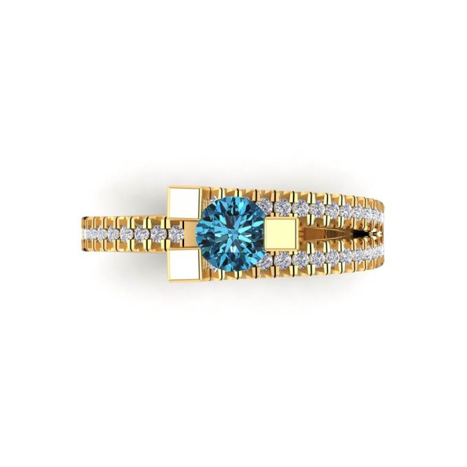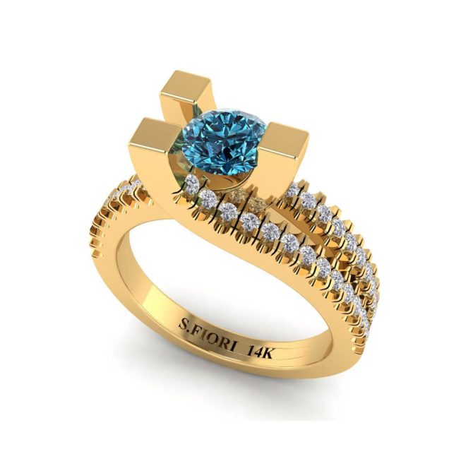 14K Gold SF Signature Venus Collection Blue Diamond Enhanced Color Rings Featuring 0.63 Round Brilliant Cut Blue Diamond Enhanced Color surrounded by 0.30 Round White Diamond