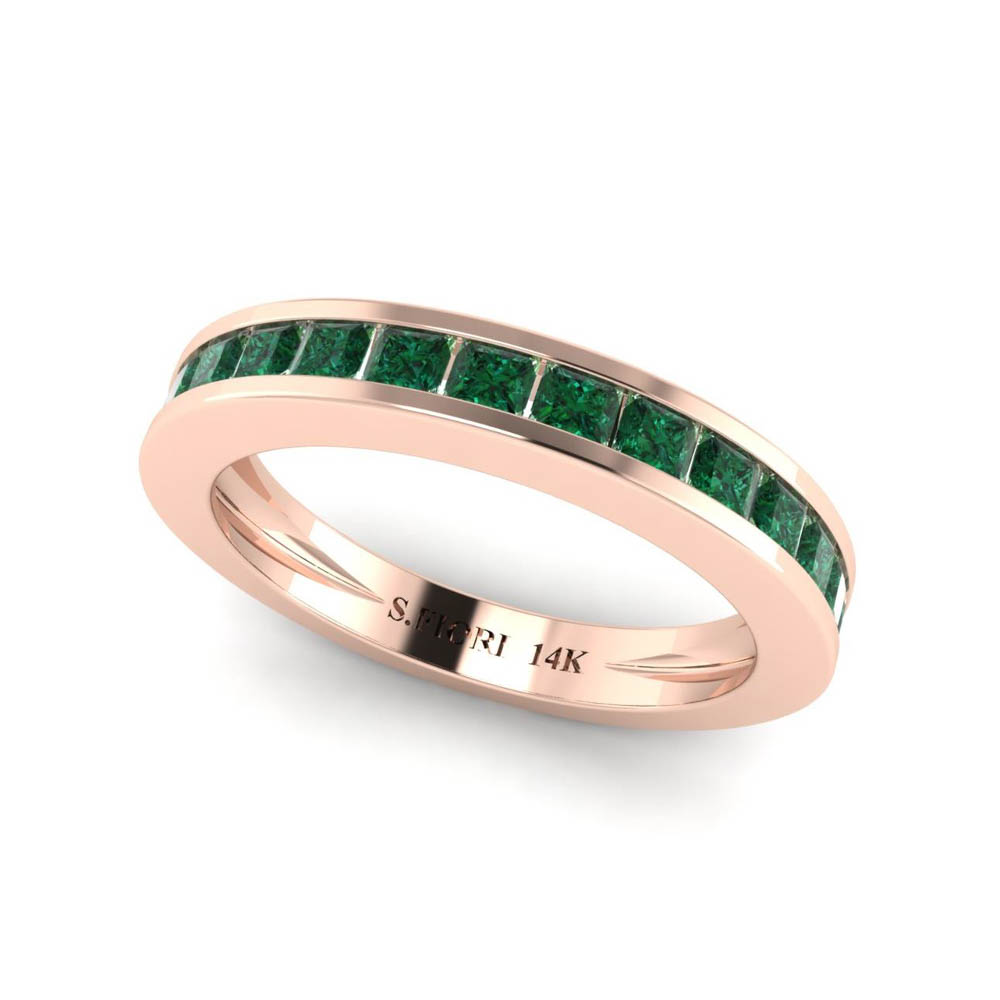 14K Gold SF Signature Victoria Band Green Sapphire Ring Featuring 0.83 cts Princess Cut Green Sapphire