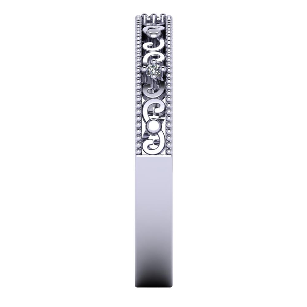 14K Gold SF Signature Victoria Band White Diamond Ring Featuring 0.03 cts Round Brilliant Cut White Diamond