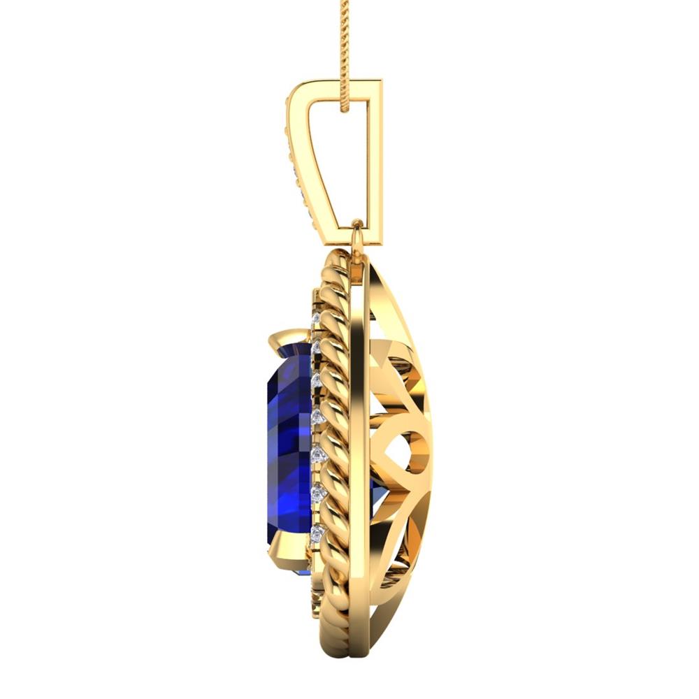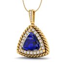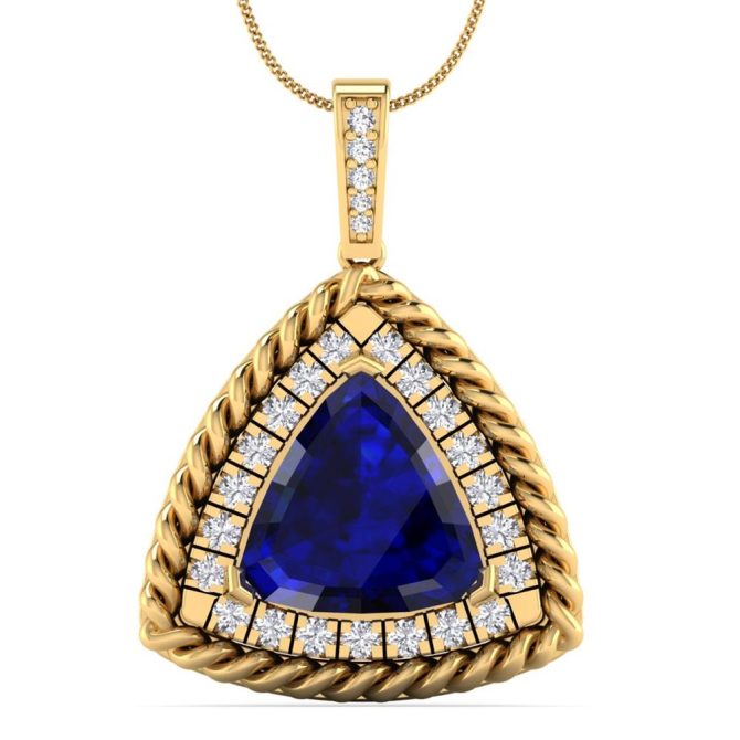 14K Gold Translucent Blue Sapphire Pendant Featuring 3.90 Trilliant Shaped Translucent Blue Sapphire surrounded by 0.42 Round White Diamond