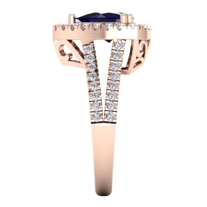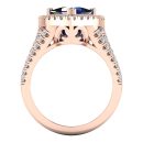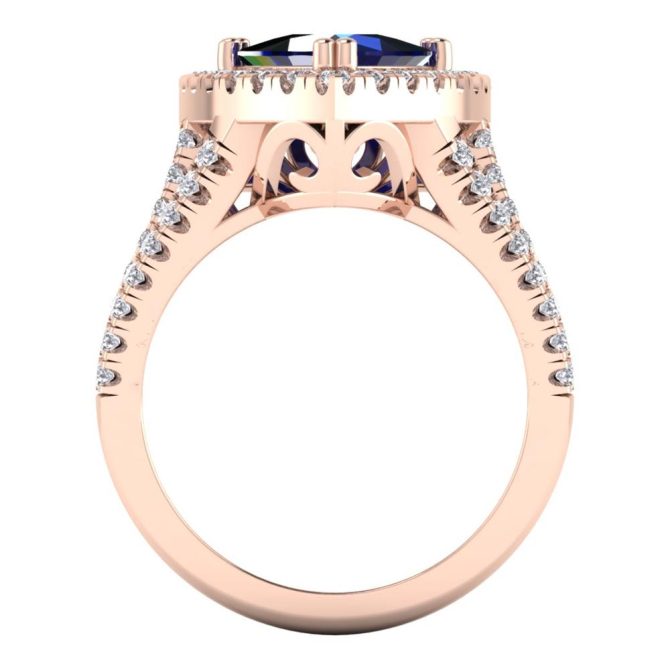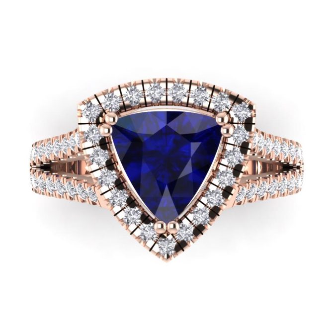 14K Gold Translucent Blue Sapphire Ring Featuring 2.35 Cts Trilliant Shaped Blue Sapphire Surrounded by 0.67 cts Round Shaped White Diamond