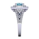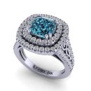 14K Gold Blue Diamond Enhanced Color Ring Featuring 1.76 Cts Cushion Shaped Blue Diamond Surrounded By 0.78 Cts Round Brilliant Cut White Diamond
