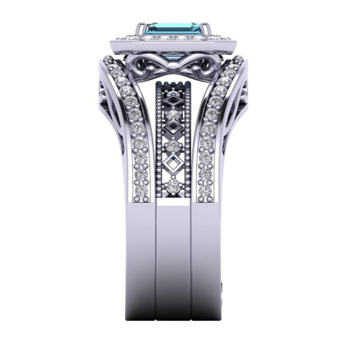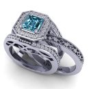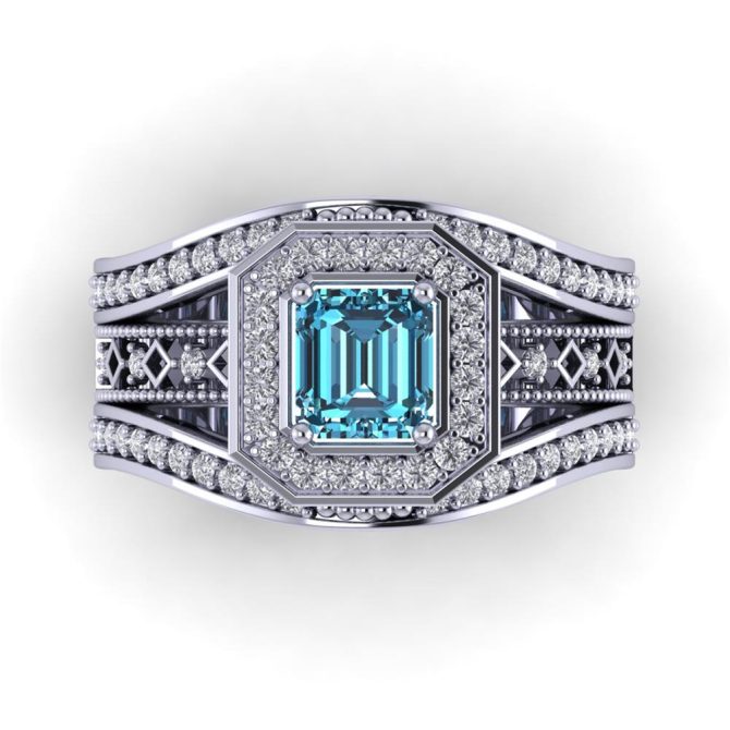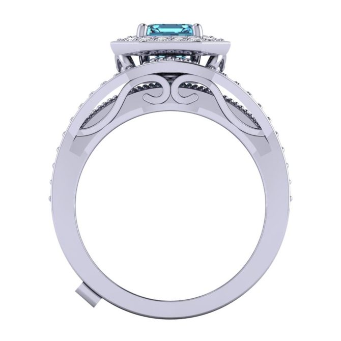 14K Gold Blue Diamond Enhanced Color Ring Featuring 1.18 Emerald cut Shaped Blue Diamond Enhanced Color surrounded by 0.50 cts Round Shaped White Diamond