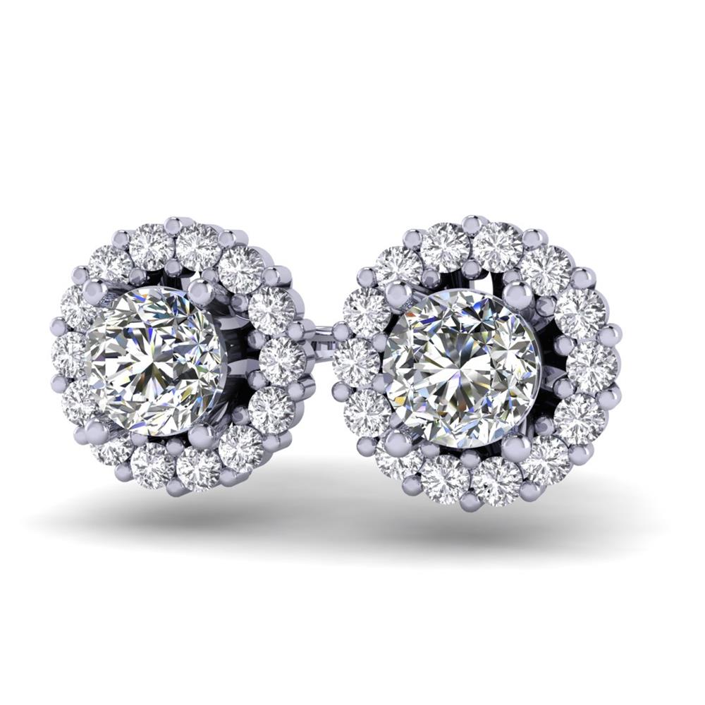 14K Gold Stunning White Diamond Lab Earrings Featuring 1.17 Round Shaped Stunning White Diamond Lab surrounded by 0.52 Round White Diamond