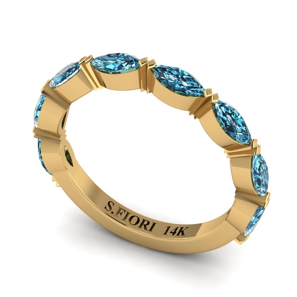 14K Gold Blue Diamond Enhanced Color Ring Featuring 0.59 Marquise Blue Diamond Enhanced Color