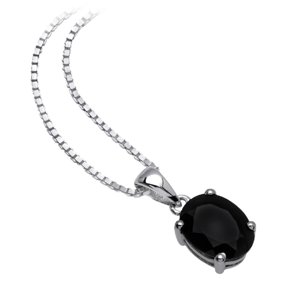 Set against a backdrop of sleek silver, an incredible midnight sapphire takes center stage in this elegant pendant.