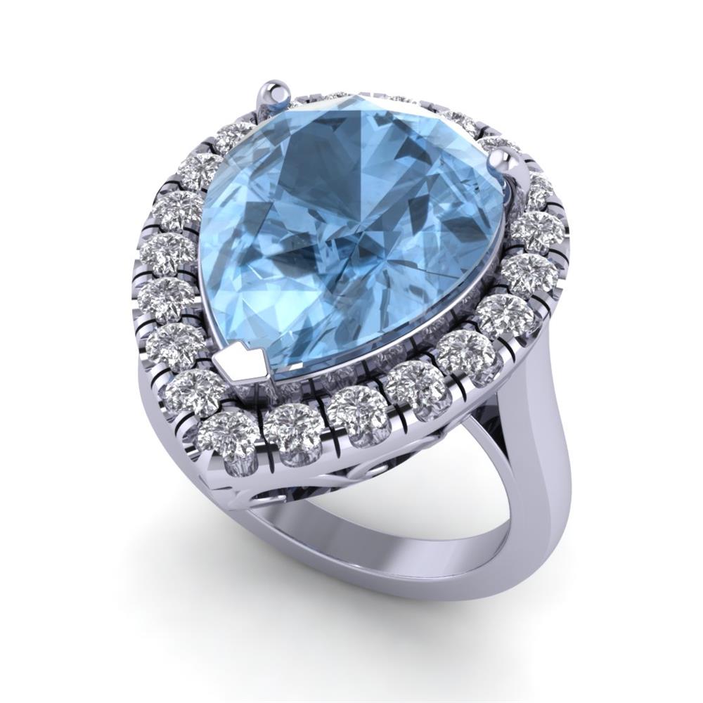 14K Gold Peaceful Aquamarine Ring Featuring 5.39 Pear Shaped Peaceful Aquamarine surrounded by 0.63 Round White Diamond