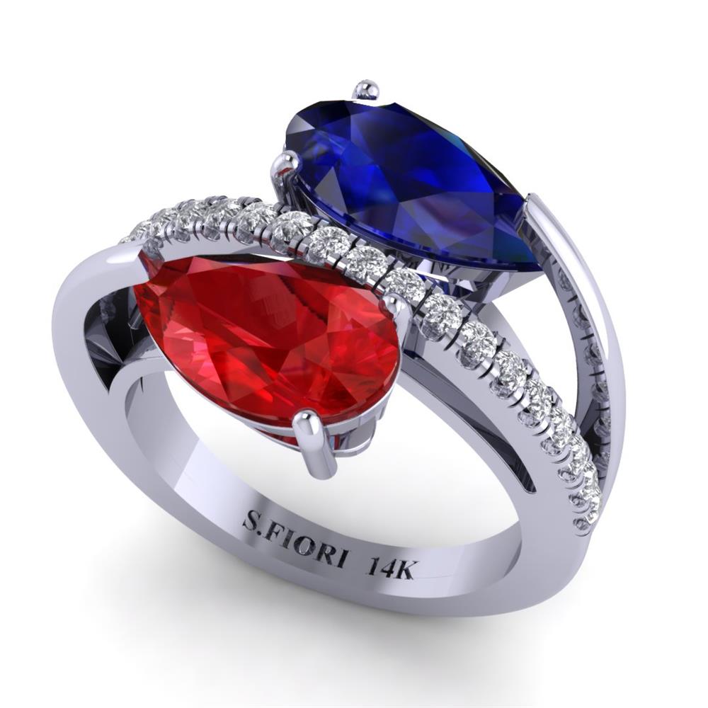 Pear shaped Two stone Ring Featuring in 14K Gold 3.87 Carats