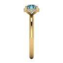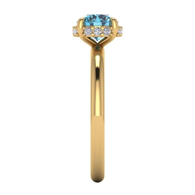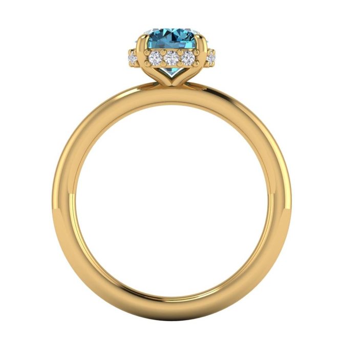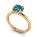 14K Gold Blue Diamond Enhanced Color Ring Featuring 1.00 Round Shaped Blue Diamond Enhanced Color surrounded by Round White Diamond 0.10