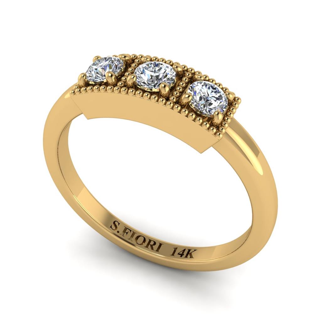 Round shaped Three-Stone Ring Featuring 0.30 in 14K Gold