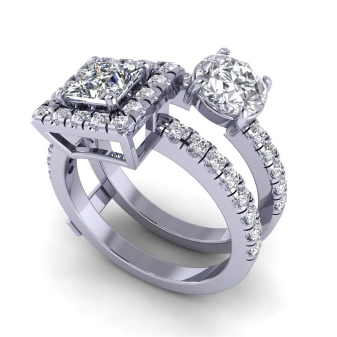 SF Signature Victoria Twostone Ring Featuring Princess cut Lab 2.10 CTW