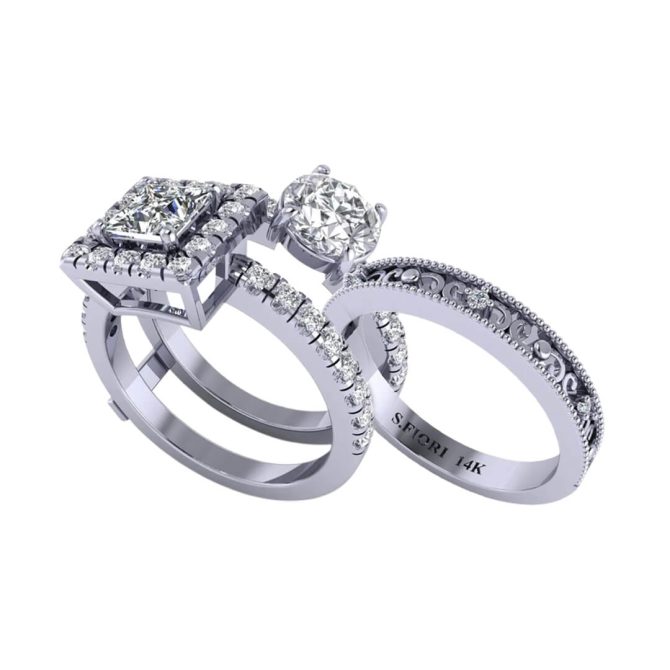 SF Victoria Two Stone Signature Ring Featuring Princess cut Lab 2.10 CTW